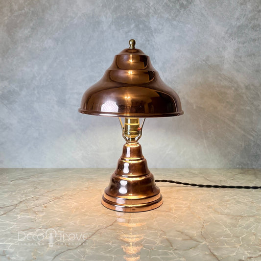 1930s Streamline Deco Machine Age Stepped Copper Mushroom Dome Lamp