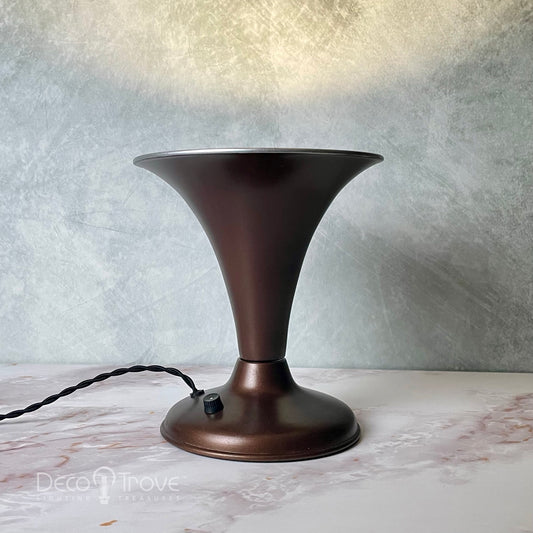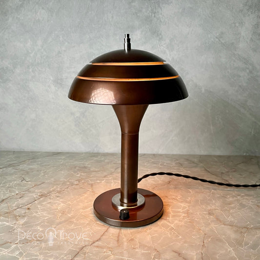 1930s Streamline Deco Machine Age Tiered Dark Copper Dome Lamp
