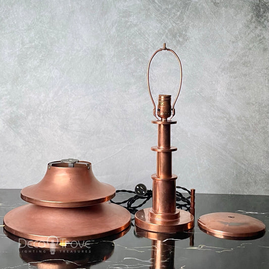 1930s Aladdin Streamline Machine Age Deco Stepped Copper Louvered Pagoda Lamp