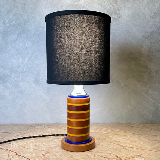 1940s Streamline Modernist Deco Wood Blue & Yellow Folk Art Lamp