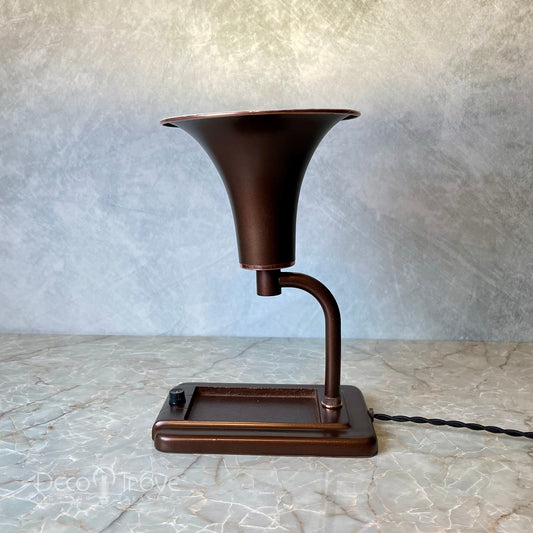 1940s Streamline Deco Burnished Amber and Copper Conical Shade Desk Lamp with Tray