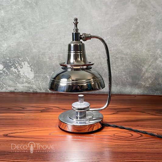 1930s Curved Streamline Deco Chrome Desk Lamp