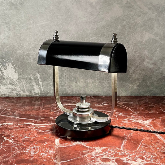1930s Markel L106-F Streamline Machine Age Black and Chrome Deco Desk Lamp