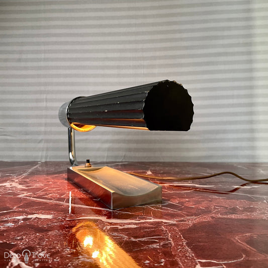 1930s Gilbert Rohde Streamline Machine Age Fluted Black and Chrome Desk Lamp - Vintage