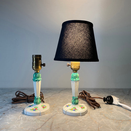 Pair of 1920s Floral Stylized Polychrome Boudoir Lamps
