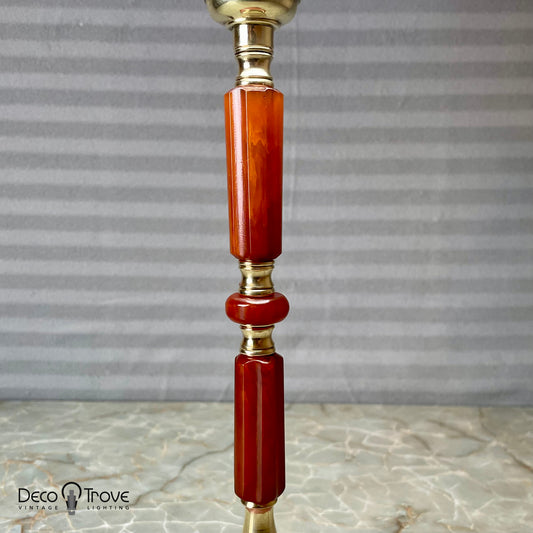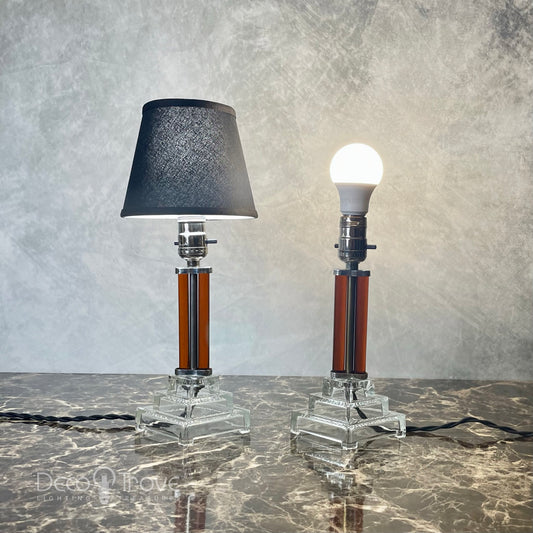Pair of 1930s Modernist Deco Machine Age Amber Glass Rod Lamps