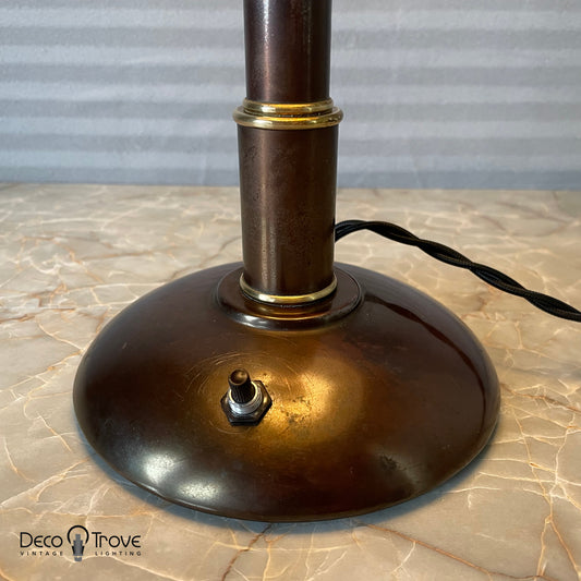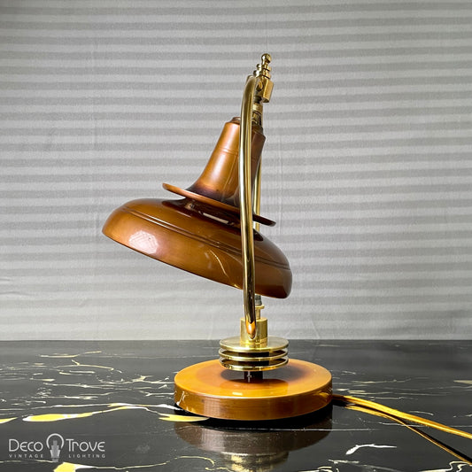 1930s Markel Machine Age Deco Brass and Patinated Copper L101 Bell Desk Lamp