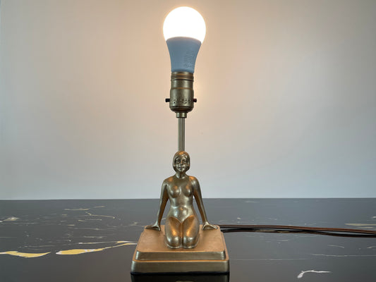 1930s NuArt Small Art Deco Gold Kneeling Lady Lamp