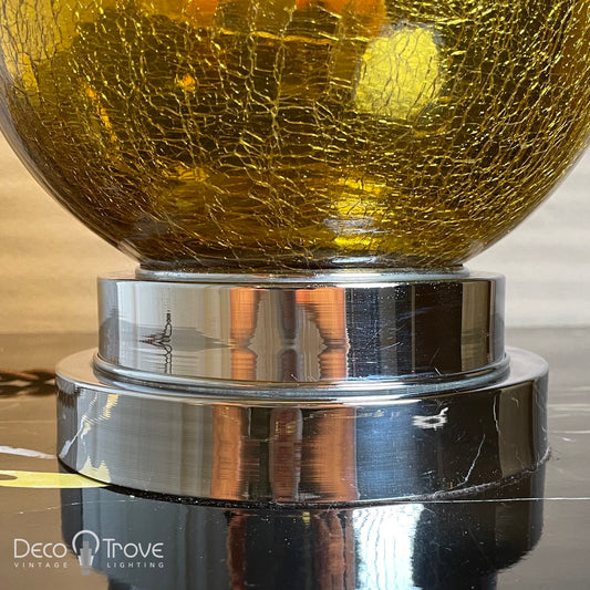 1930s Modernist Deco Stepped Gold/Yellow Crackle Mercury Glass Globe Lamp