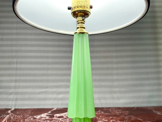 1930s Houze Glass Art Deco Geometric Fluted Jadeite and Brass Lamp