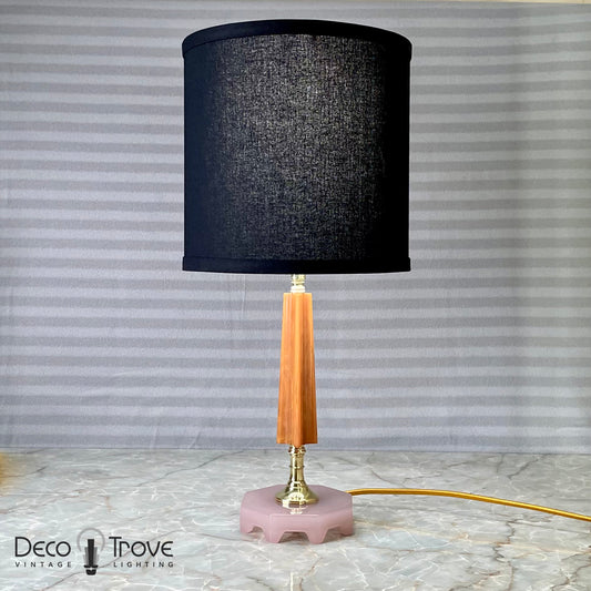 Pair of 1930s Houze Glass Art Deco Orange Bakelite, Brass, and Pink Glass Lamps