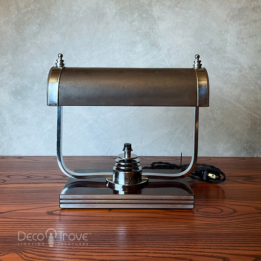 1930s Markel Machine Age Deco Chrome and English Bronze L103F Desk Lamp