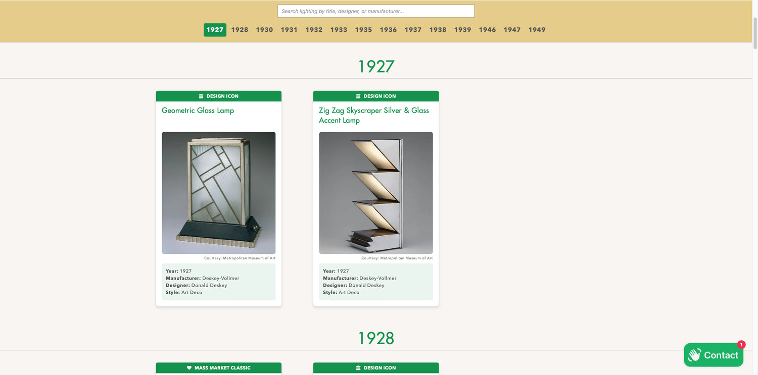 Explore our NEW Deco Lighting Timeline Tool (Beta) — a beautifully curated journey through the evolution of Art Deco and Streamline Moderne lighting. Discover the lamps and makers that shaped the era.