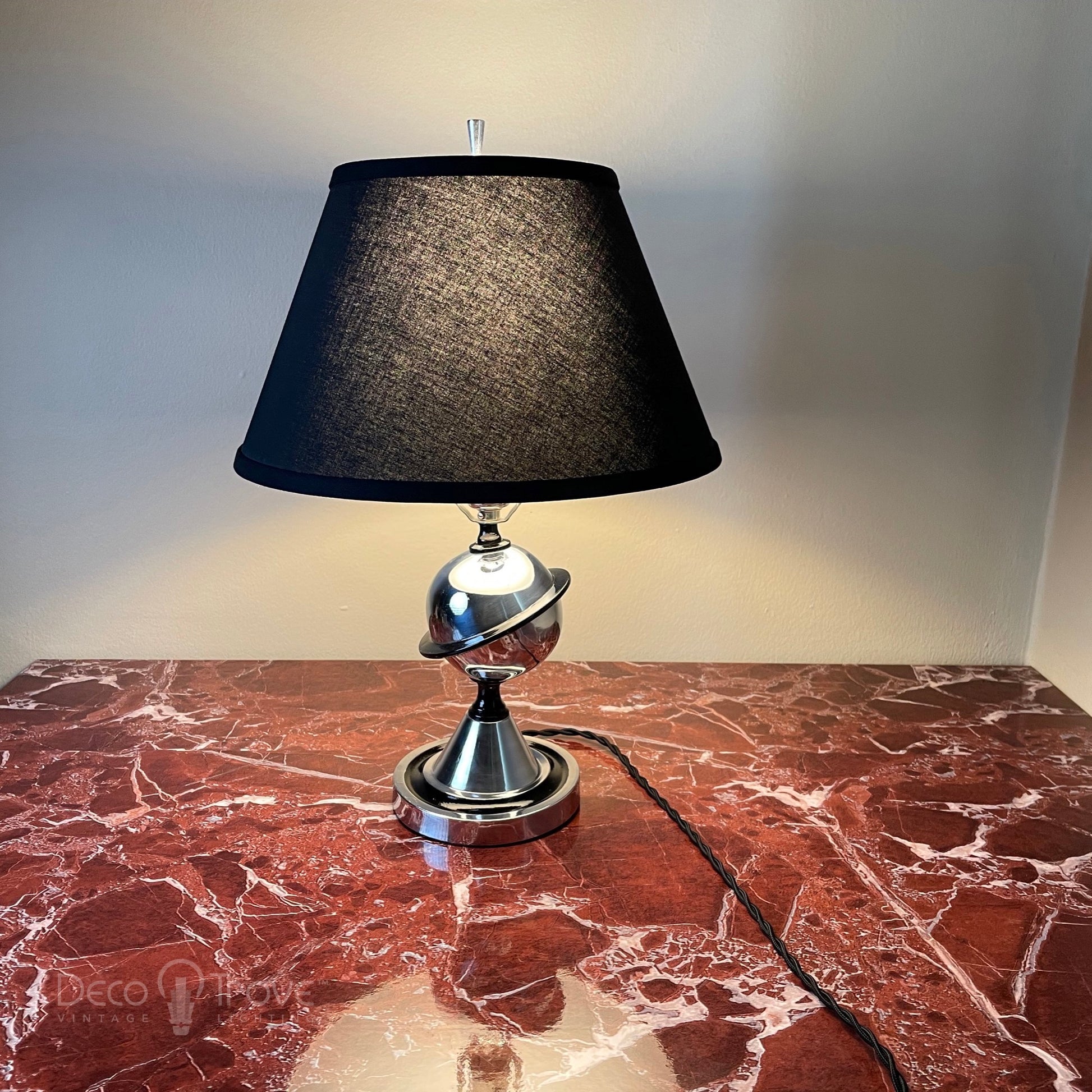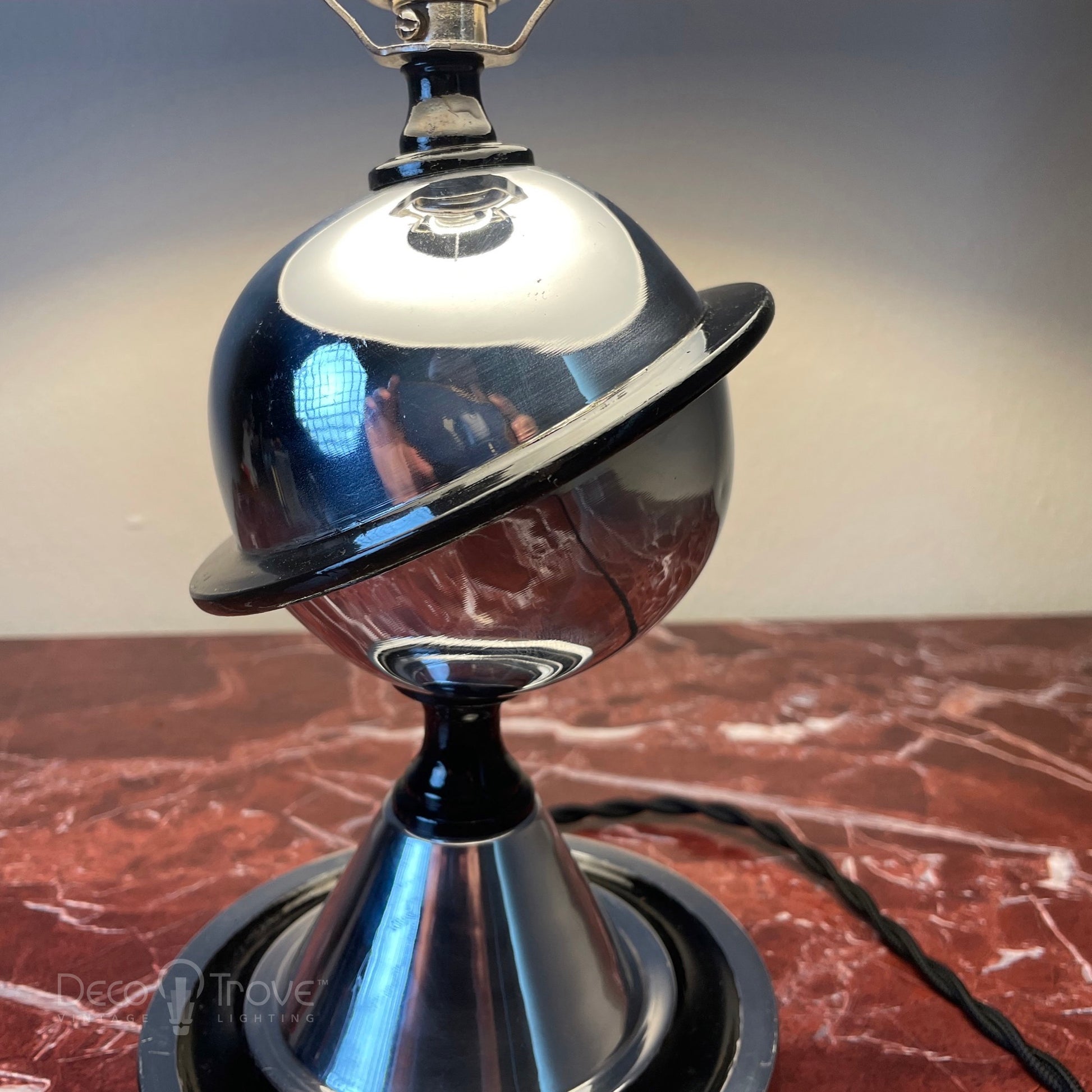 1930s Machine Age Deco Black and Chrome Saturn Lamp