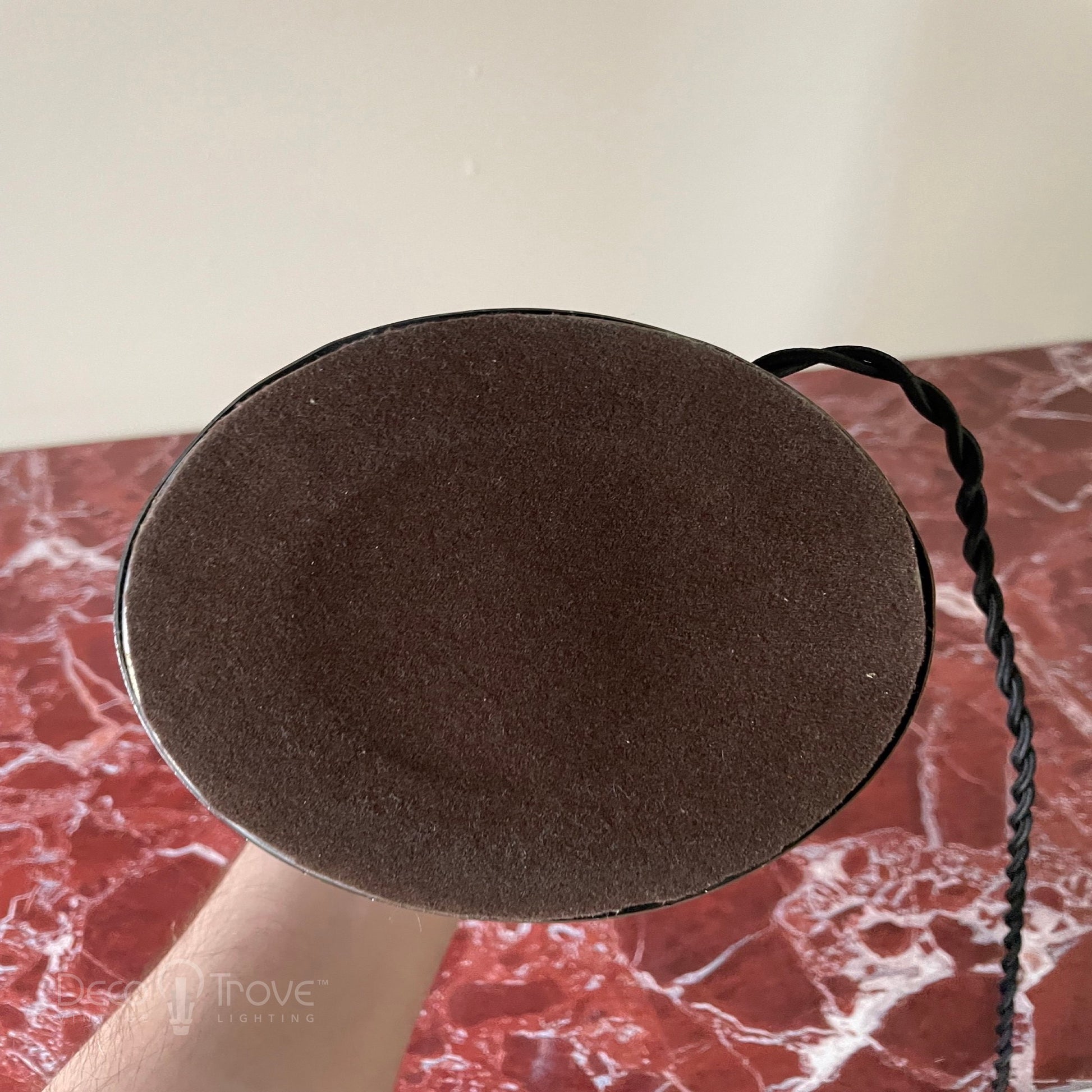 All of our lighting has been fully disassembled, thoroughly cleaned, and rewired. The socket shell(s) and all external metal components have been professionally machine polished to a beautiful shine. The original felt on the bottom has been replaced with a new brown soft-touch felt. The electrical wiring has been replaced with a new black rayon cord and a black vintage style polarized plug for safe and modern usage.